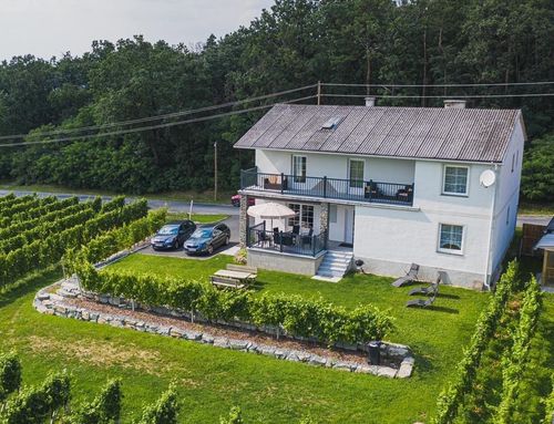 Moderne Architektur, Doppelbadewanne, Klimaanlage, WLAN, Flat-TV mit SAT, Designer-Kaminofen, Infrarotheizung. Outdoor-Tischgrill. Weitblick über die Pannonische Tiefebene. Liegedeck mitten im Weingarten. Hunde willkommen.
