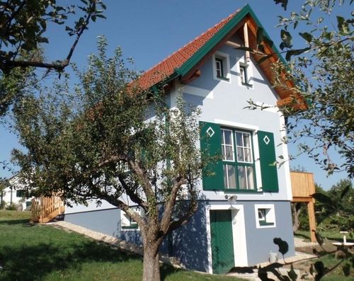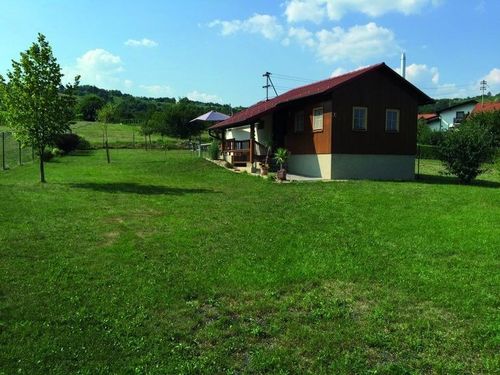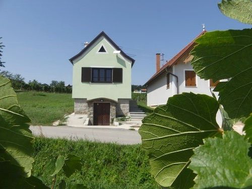 Ferienhaus mit Vorraum, Küche, Wohn- und Essraum, 2 Schlafzimmer, Bad WC. Von der 20m² großen Laube kann man eine wunderbare Landschaft und eine Aussicht bis in die ungarische Tiefebene genießen. Das Haus bietet Platz für 4 Personen.