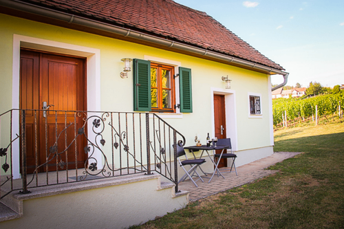 Terrasse mit Blick in den Weingarten. Keine Haustiere erlaubt.