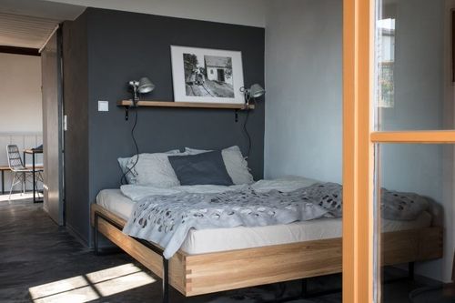 Schlafzimmer mit angrenzender moderner Dusche/WC